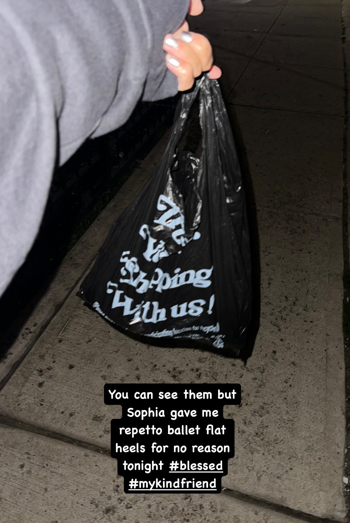 Spotted some black Repetto ballet flats at my friend Sophia’s front door while exiting. I mentioned off-handedly that I was planning on buying the same exact ones and wanted to ask her if a swag overlap would be uncomfortable, but before I was done explaining myself, the shoes were in my hands, wrapped in a plastic bodega bag. She insisted that I take them, and I thought about refusing, but expensive shoes from a dear friend are expensive shoes from a dear friend, and I’m a poor girl. Thank you, Sophia.
